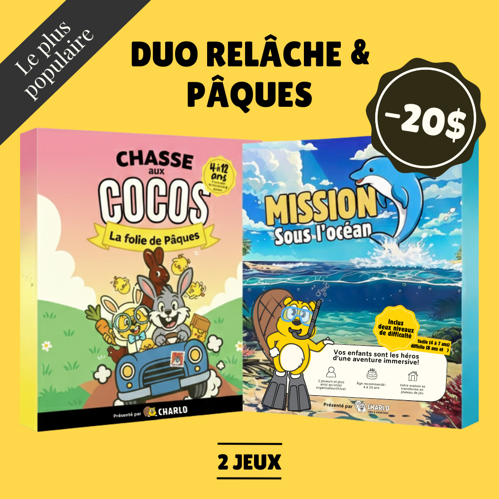 Transformez la relâche et Pâques en aventures inoubliables avec le Duo de la relâche Charlojeu !